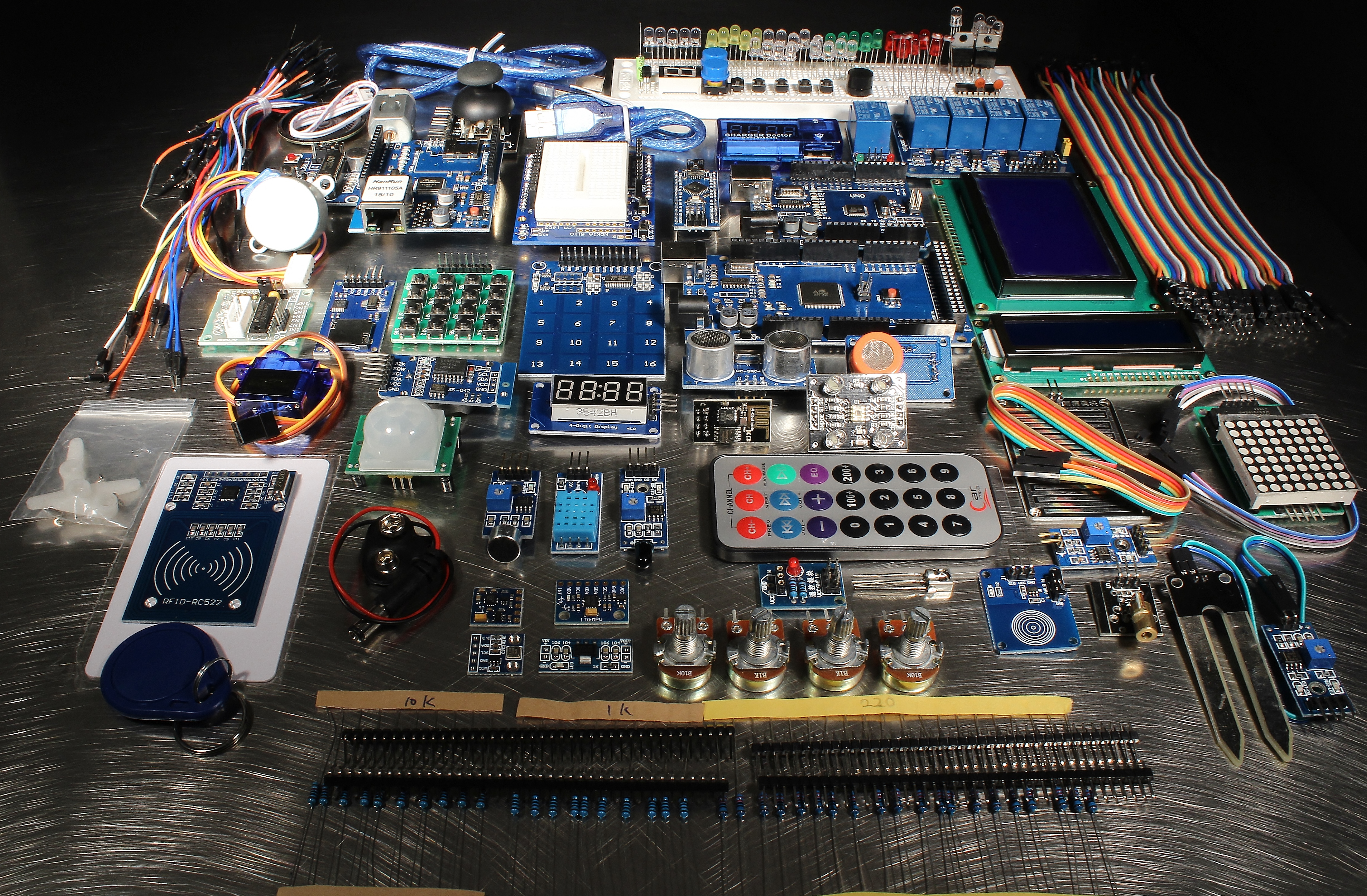 Bien entendu pour mettre en application le livre, il lui fallait un arduino. J’ai choisi ce kit sur aliexpress il lui permettra de réaliser les premières aventures, tout le matériel nécessaire n’étant pas présent je complèterai par la suite. A cela j’ai ajouté ce kit de résistances composants indispensable. En revanche trois semaines se sont écoulée jusqu’à la réception du colis si vous êtes pressé commandé ailleurs.