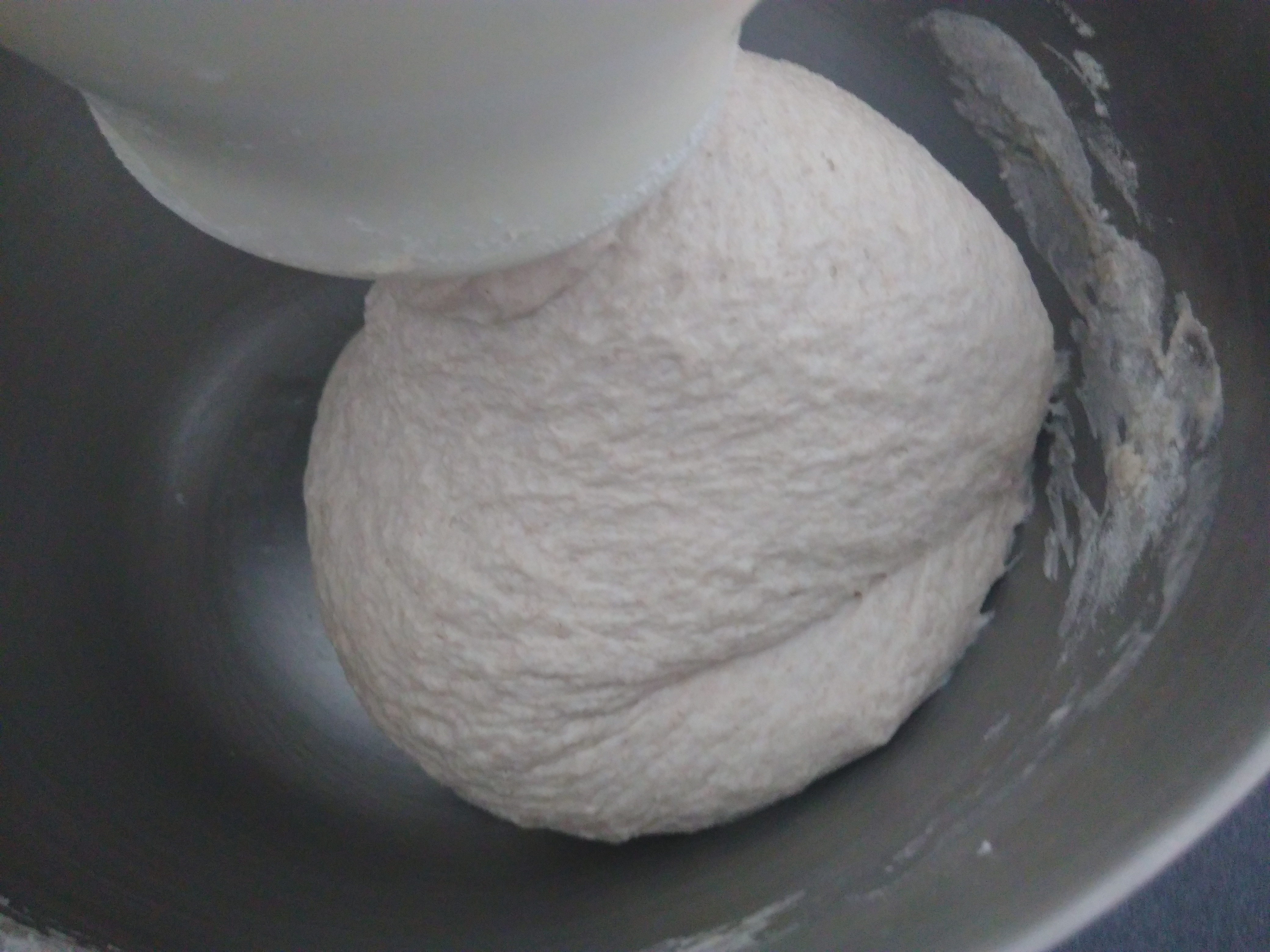 Attention toute fois au temps de pétrissage il ne doit pas s’éterniser, car plus on pétri la pâte plus elle chauffe et une pâte trop chaude perd ses propriétés élastiques. Une pâte moins élastique lèvera moins bien. En effet c’est le CO2 (généré par la fermentation du levain) emprisonné dans la pâte qui permet à celle-ci de lever. Si elle est moins élastique elle devient poreuse, par conséquent une partie du CO2 s’échappe au lieu rester dans la pâte. Cela produira un pain petit qui durcira à la cuisson.