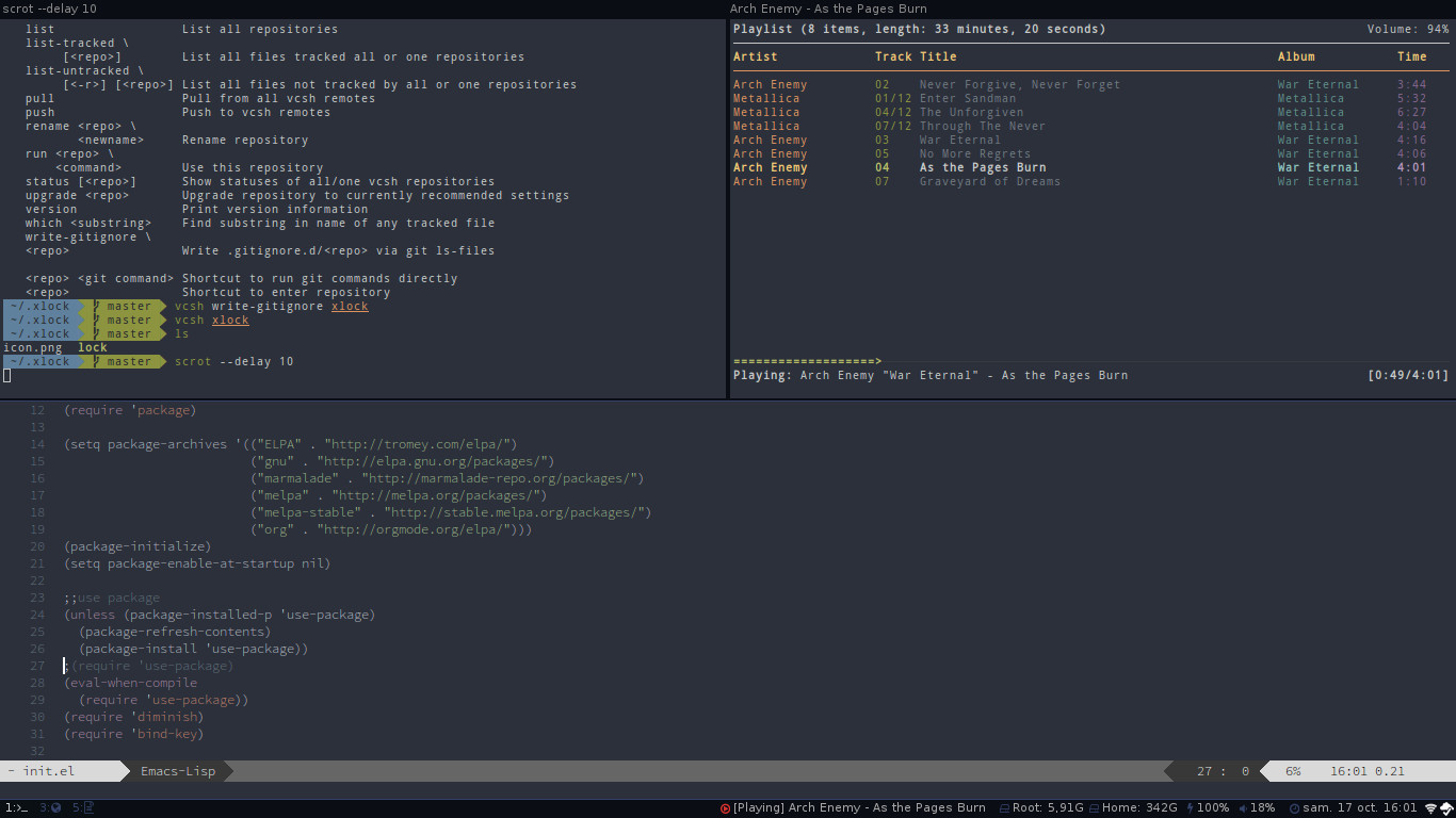 Je ne me suis jamais habitué à la philosophie gnome-shell, c’est pourquoi je me suis rapidement tourné vers XFCE puis Openbox. Mon but étant de trouver une interface graphique, épurée, légère, utilisable principalement au clavier. Openbox a rempli sa part du contrat jusqu’au jour ou je me suis intéressé au Tilling.