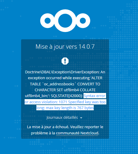 Lors de la mise à jour vers la version 14 de mon nextcloud j’ai fait face à deux erreurs bloquantes. Voici comment j’y est remédié.